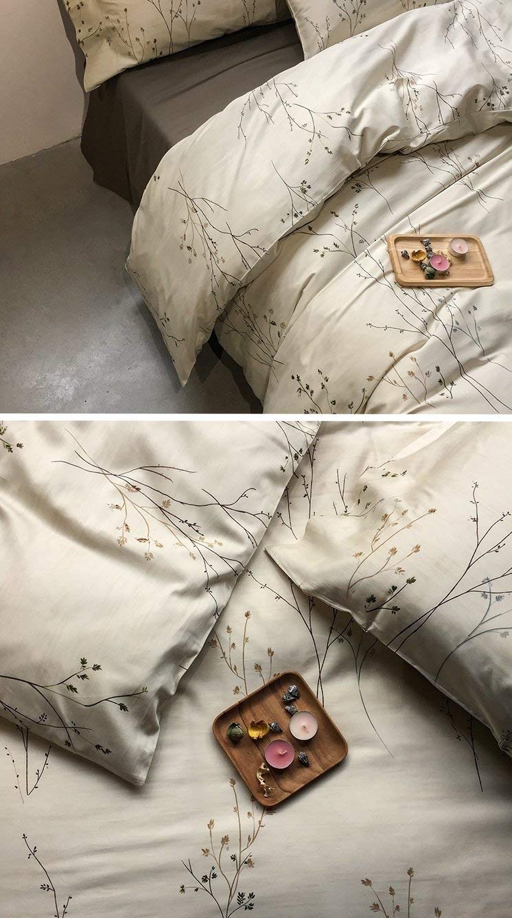 Mid-century modern chic botanical print bedding set by EIKEI home.
